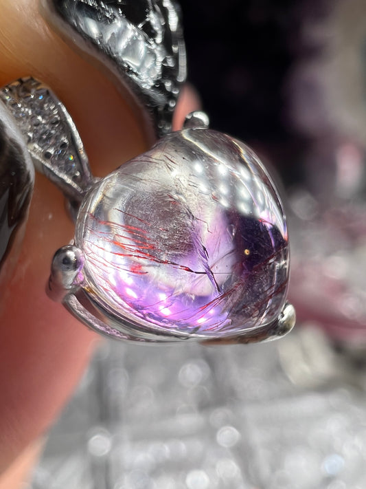 Rhodolite purple garnet faceted with red faceted garnet 925silver pendant