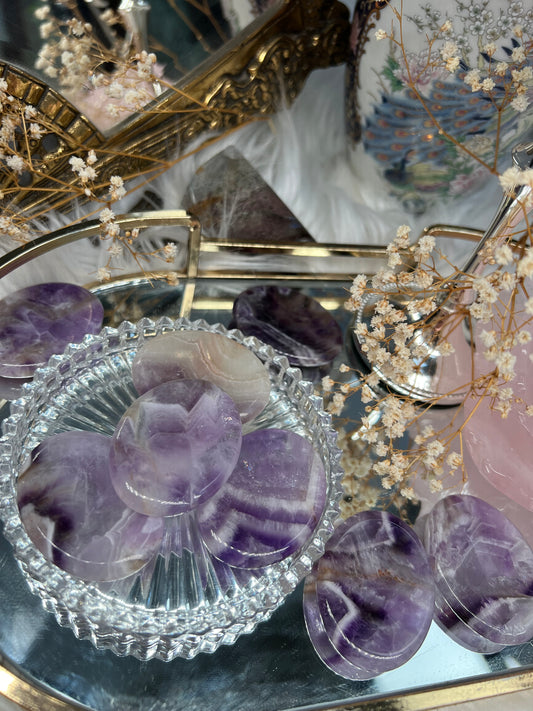 Amethyst & agate with moss agate inclusions sparkly heart with metal stand