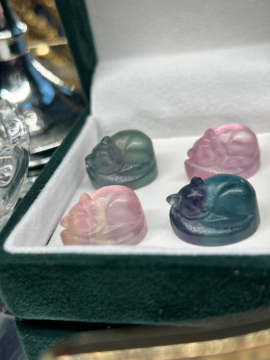 Fluorite mystery mini sleeping cat carving