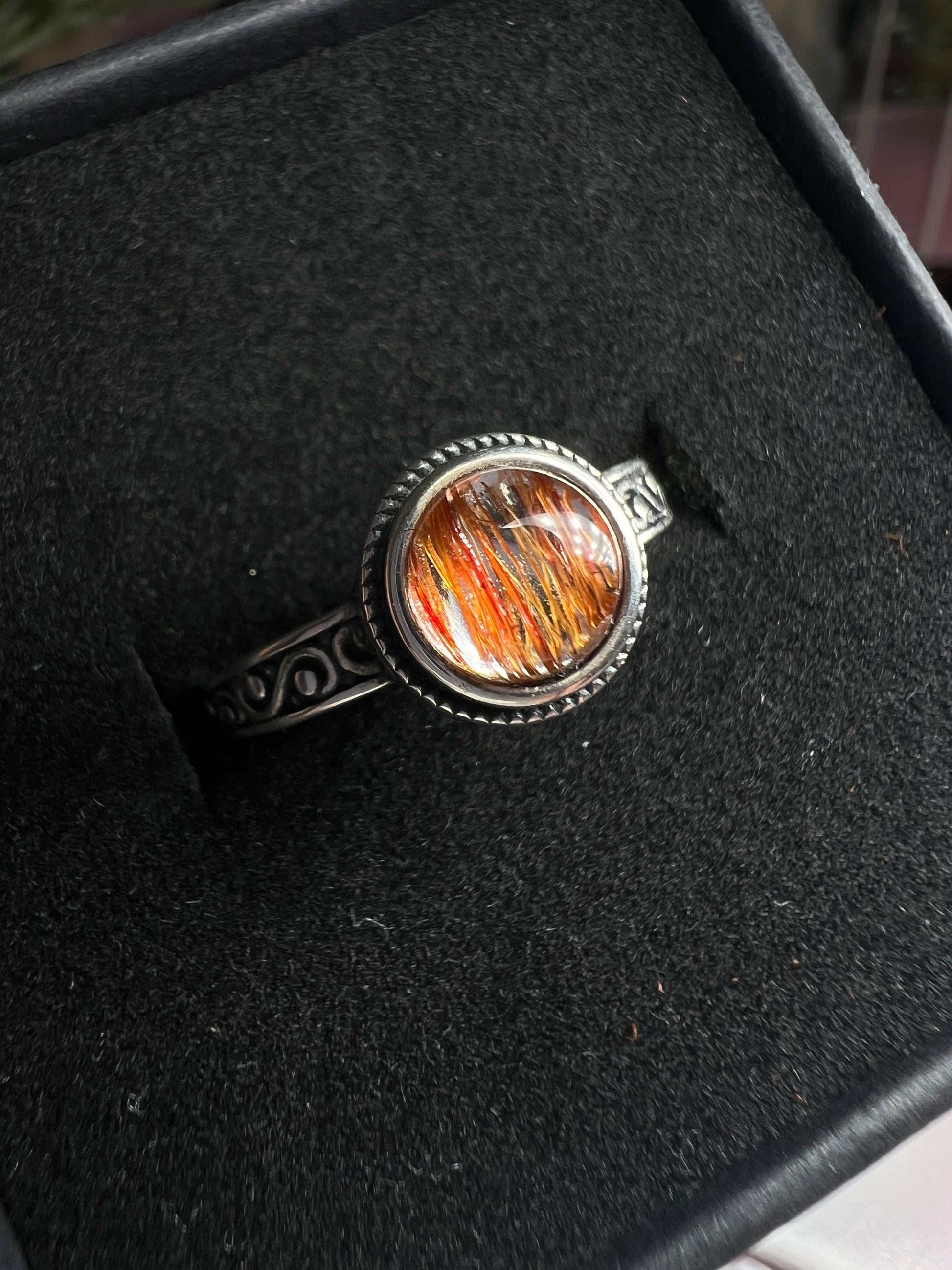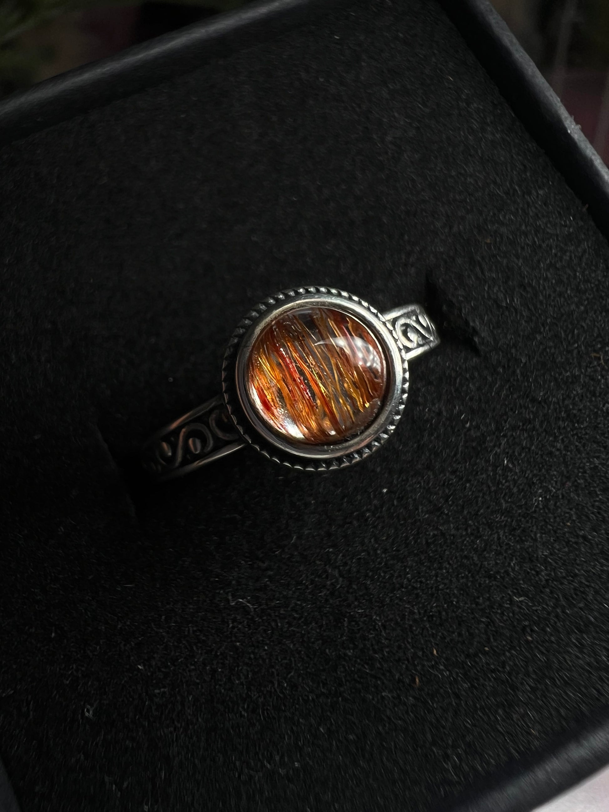 Copper rutile quartz 925silver adjustable size ring