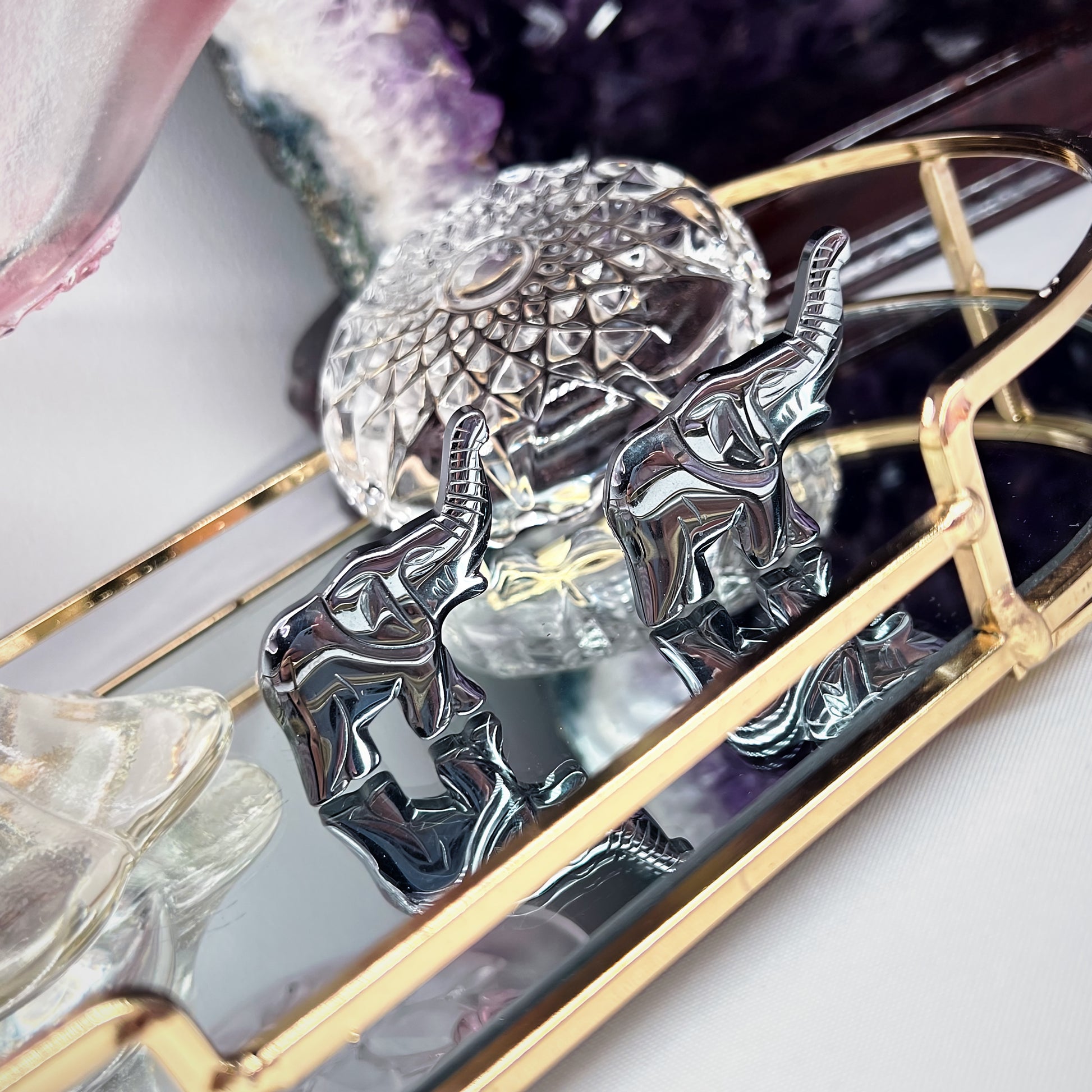 Grounded strength meets protective energy with this Hematite elephant carving — a symbol of wisdom, stability, and resilience. Elephants carry ancient energy of loyalty and grounding, while Hematite’s mirror-like shine reflects negativity away, keeping your aura shielded and balanced.